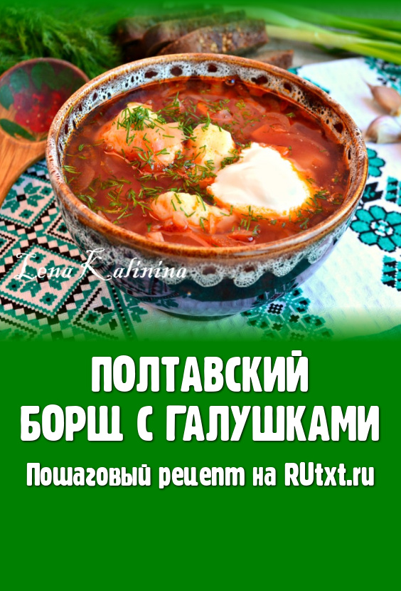 Предлагаю вам попробовать необычайно вкусный полтавский борщ. Особенность этого борща в том, что подают его с галушками. Блюдо получается насыщенным, сытным, очень аппетитным. Обязательно приготовьте полтавский борщ с галушками, уверена, и вам, и вашим близким он придётся по вкусу!