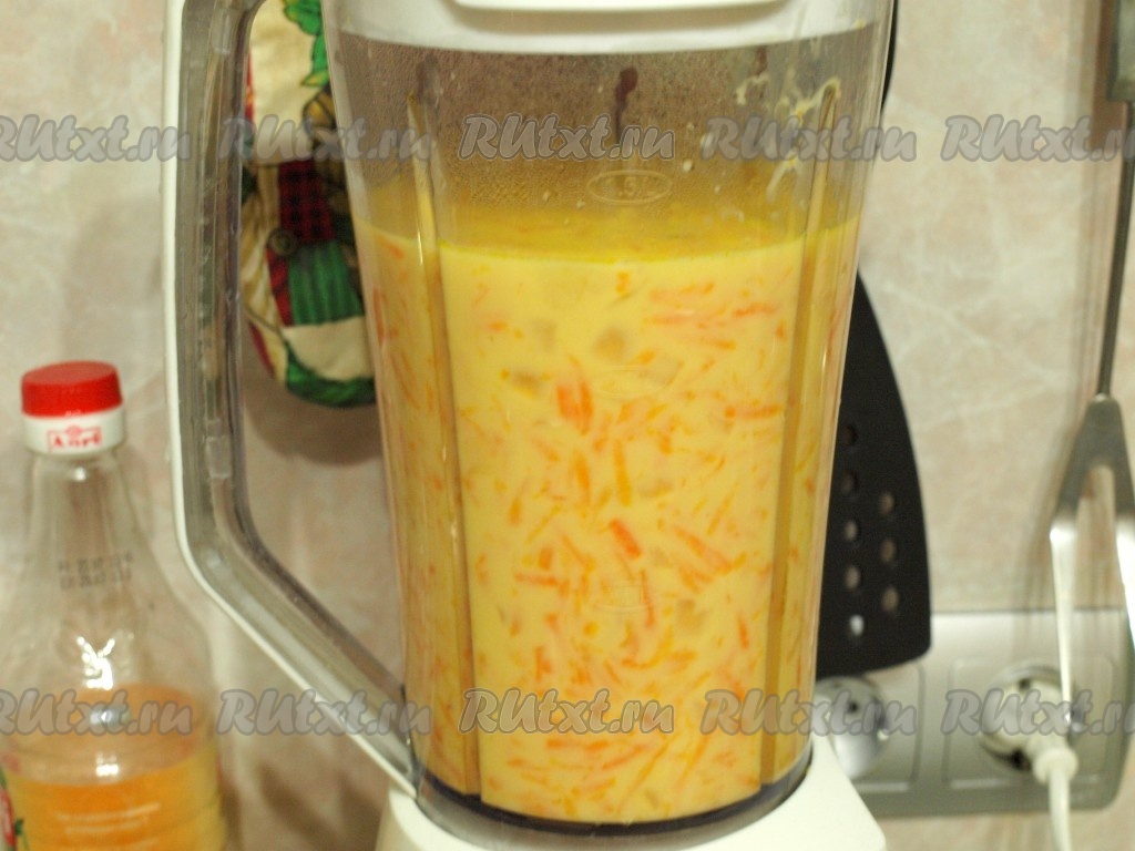 Приготовленный суп пюрируем блендером (можно воспользоваться погружным блендером).