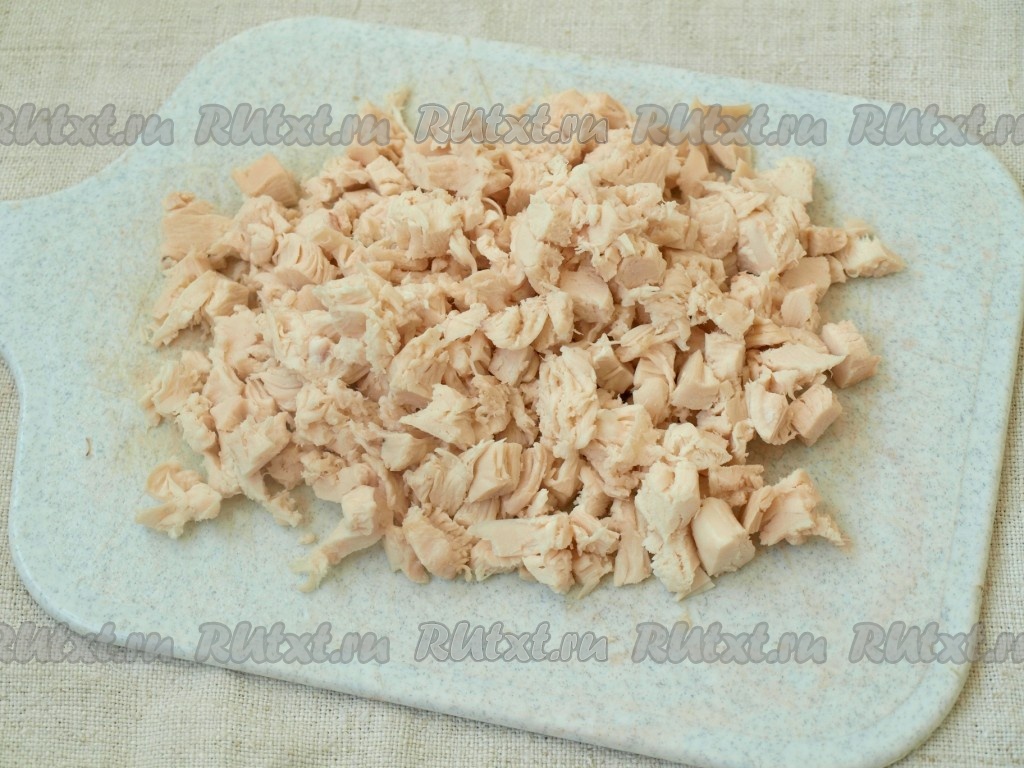 Нарезать кубиками куриное филе.