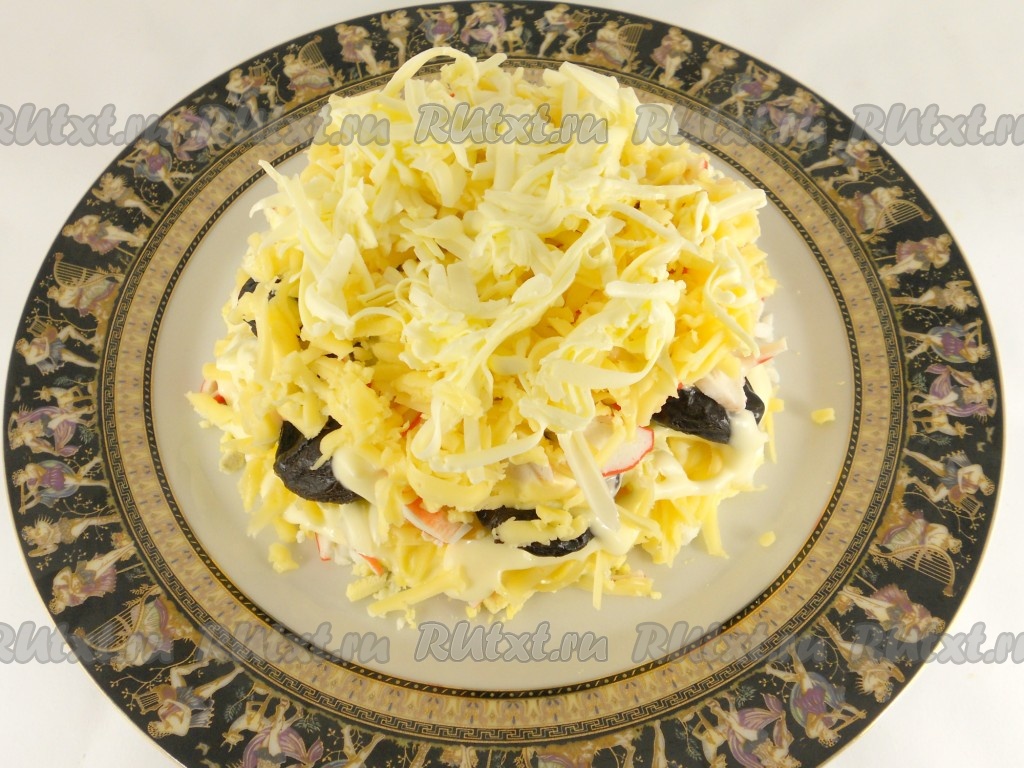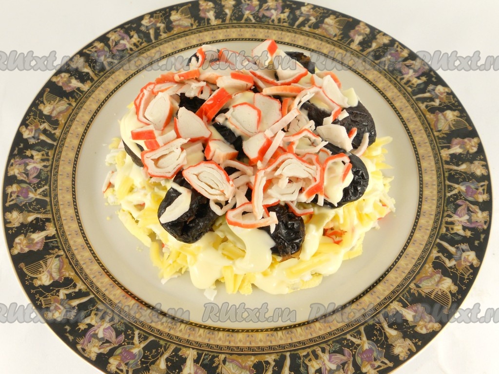 Салат "Чёрный жемчуг" выкладывать слоями на большую круглую тарелку.