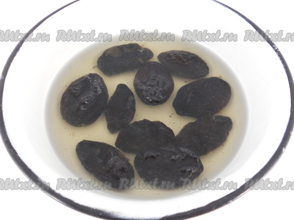 Яйца отварить и остудить. Чернослив залить кипятком и оставить на 10-15 минут.
