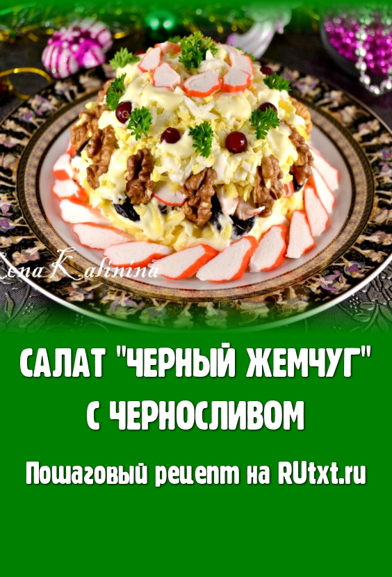 Очень вкусный, необычный, воздушный и красивый салат "Черный жемчуг" с черносливом украсит любой праздничный стол. Салатик очень нежный, интересный по вкусу. Готовится не сложно, смотрится на праздничном столе очень эффектно. Попробуйте!