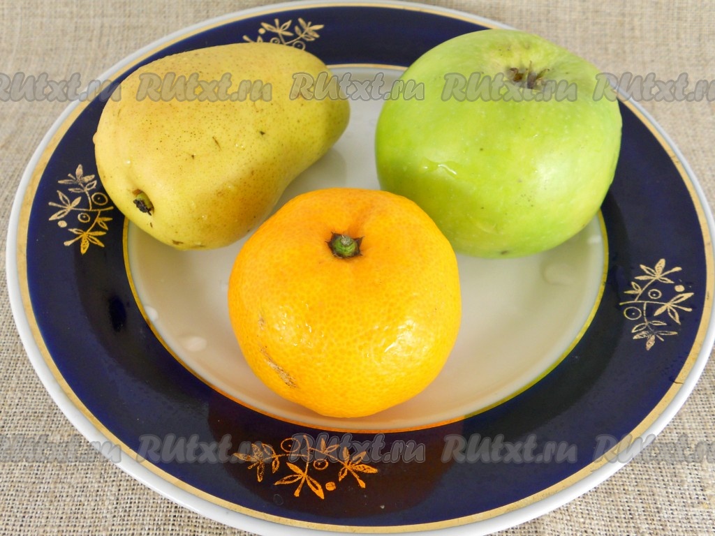 Яблоко, грушу и мандарин хорошенько помыть.