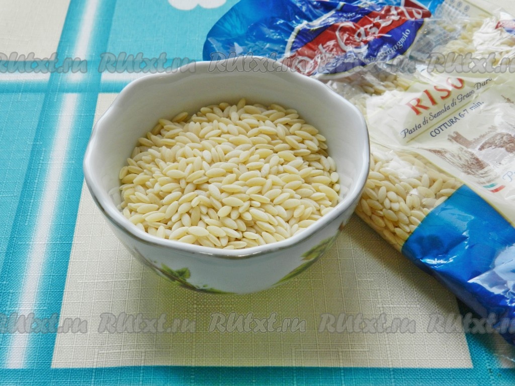 Паста Riso по форме напоминает рис, имеет приятный вкус и подходит для приготовления первых блюд. Вместо этой пасты можно использовать другие мелкие макаронные изделия.