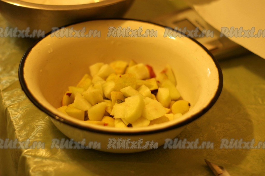 Яблоки, по желанию, очистить от кожуры, достаточно крупно нарезать, вырезая семенную коробку.