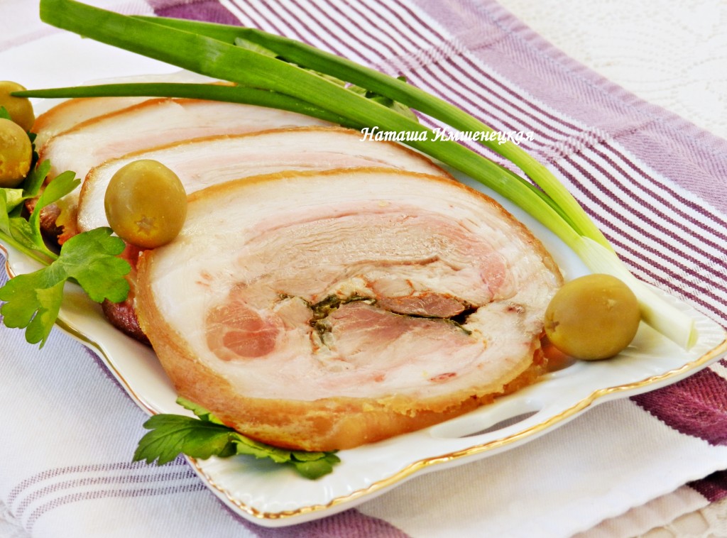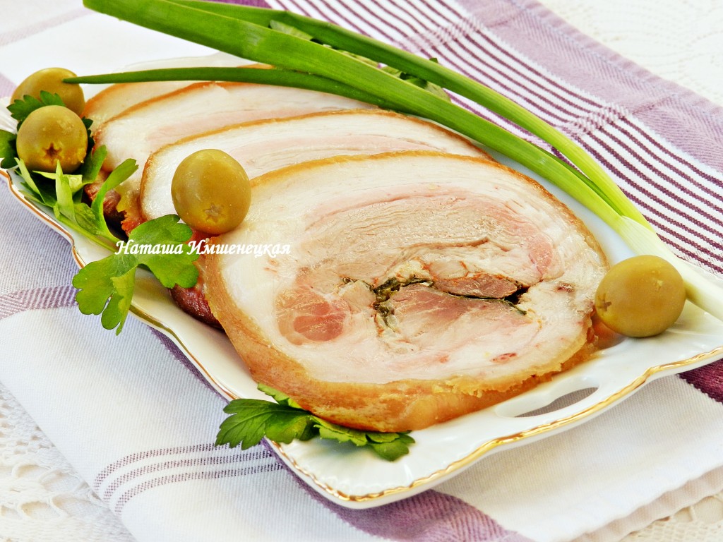 Рулет из свиной рульки, запечённый в духовке, получается вкусным и очень аппетитным.