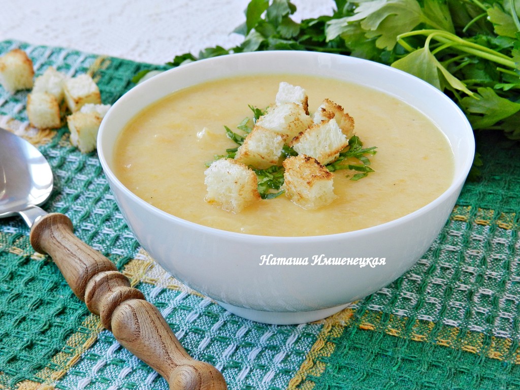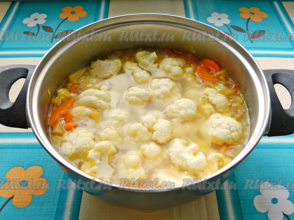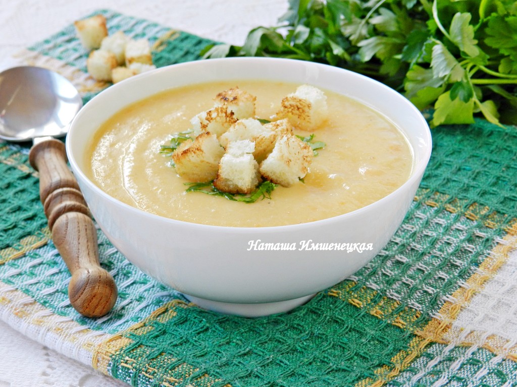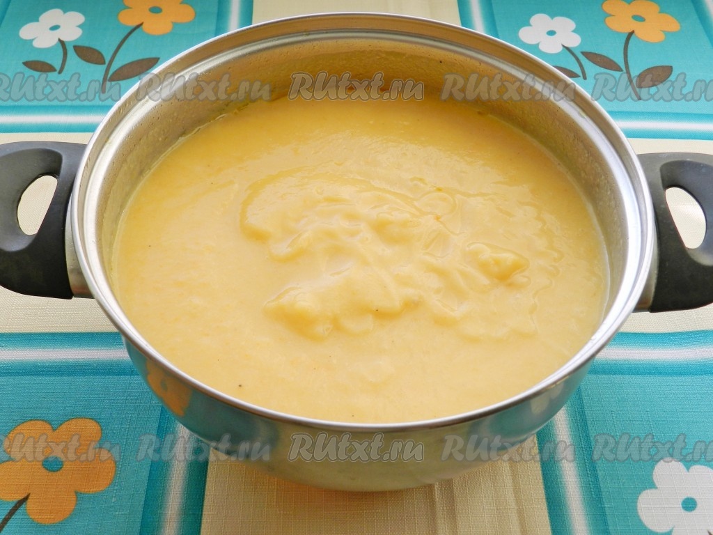 Вкусный и нежный сырный суп с цветной капустой готов.