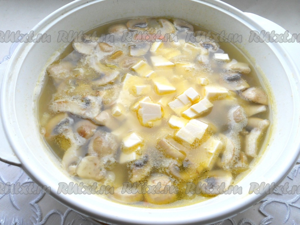 Варить все вместе 10 минут на небольшом огне. Далее добавить плавленный сырок и, периодически помешивая, кипятить суп до расплавления сыра (минут 7-10).