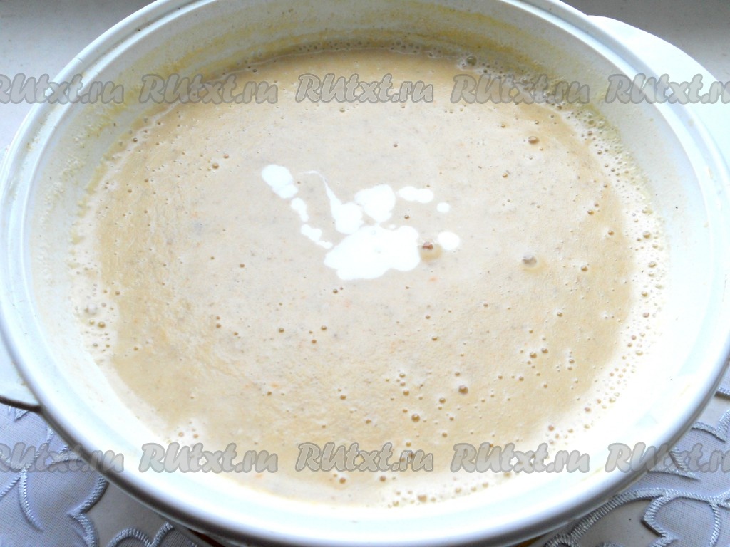 Затем готовый суп пюрировать погружным блендером до однородной консистенции.