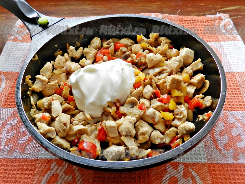 Добавить сметану, перемешать и готовить еще около 3 минут.