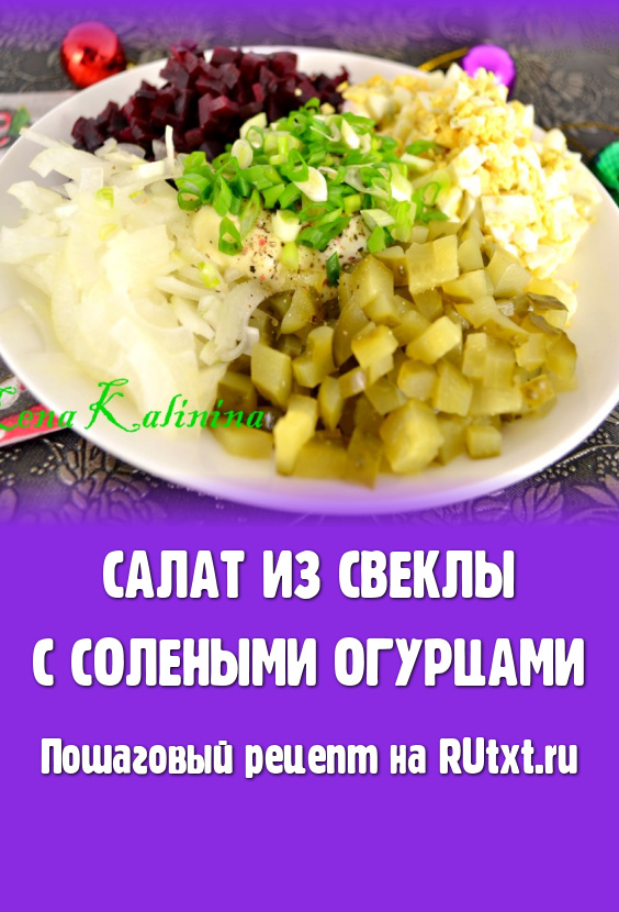 Салат из свеклы с солеными (или маринованными) огурцами - совершенно простой в приготовлении, но очень вкусный, в русском стиле салатик. Его можно приготовить просто на ужин, а можно подать и на праздничный стол. Попробуйте!