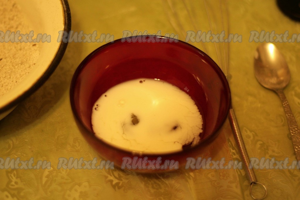 В отдельной миске соединяем яйцо и молоко, взбиваем вилкой до однородности.