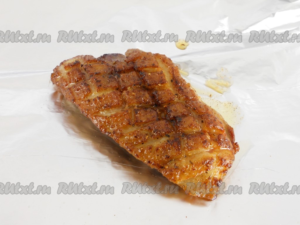 Затем перевернуть филе на другую сторону и обжарить еще минуты 4. Выложить мясо на лист фольги. Плотно завернуть и поместить в разогретую до 190 градусов духовку на 15 минут.