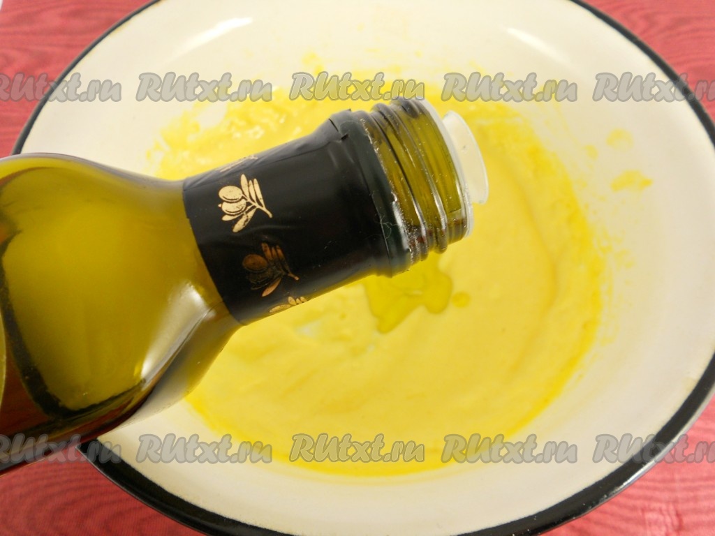 Далее тонкой струйкой вливать в апельсиновый соус оливковое масло, продолжая мешать венчиком. Дать соусу остыть.