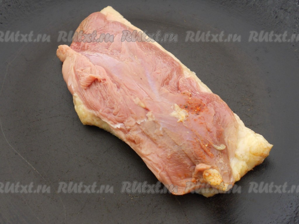 Посолить, посыпать паприкой и свежемолотым перцем, втирая специи в разрезы.
