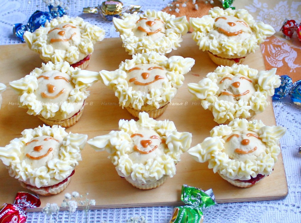 Предлагаю приготовить веселенькие маффины. Классическое, в меру сладкое, я бы даже сказала, пресное, чуть рассыпчатое тесто отлично дополняют прослойка из джема и масляный крем, делая эти замечательные маффины-пирожные вкусными и не приторными. Они несомненно подойдут для новогоднего, особенно детского, праздника! Готовятся маффины очень быстро и просто!