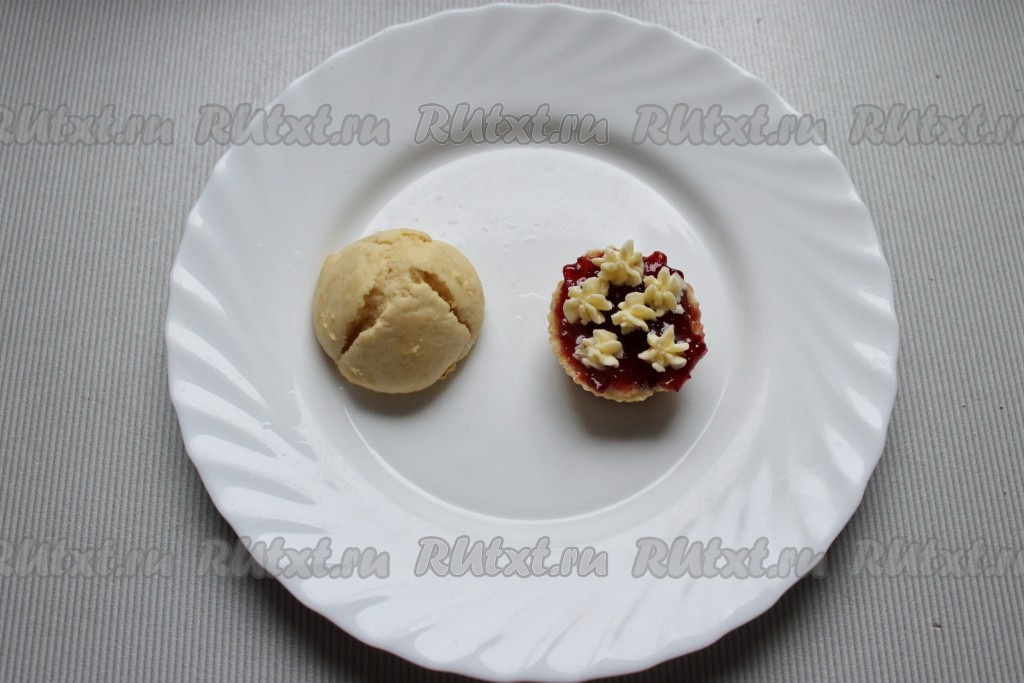 Маффины разрезать вдоль на 2 части. Нижний корж смазать небольшим количеством джема и кремом, накрыть верхней частью.