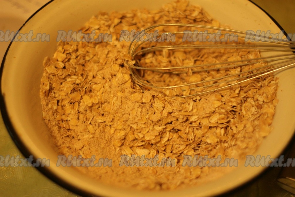 Сливочное масло должно быть комнатной температуры, поэтому достать из холодильника его нужно заранее. Очищенную тыкву нарезать на небольшие кусочки и запечь до мягкости в течение 7-8 минут при максимальной мощности в микроволновке (или в духовке в течение 25-30 минут при температуре 180 градусов). Тыкву, запечённую до мягкости, полностью остудить и пюрировать погружным блендером до получения однородного пюре. В глубокой миске смешиваем венчиком 0,5 стакана муки, овсяные хлопья, соду, корицу и соль.