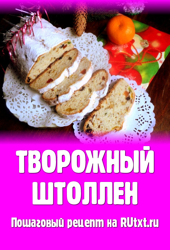 На этот раз я испекла творожный штоллен, преимущество которого быстрота приготовления. Штоллен получился очень вкусным и ароматным!