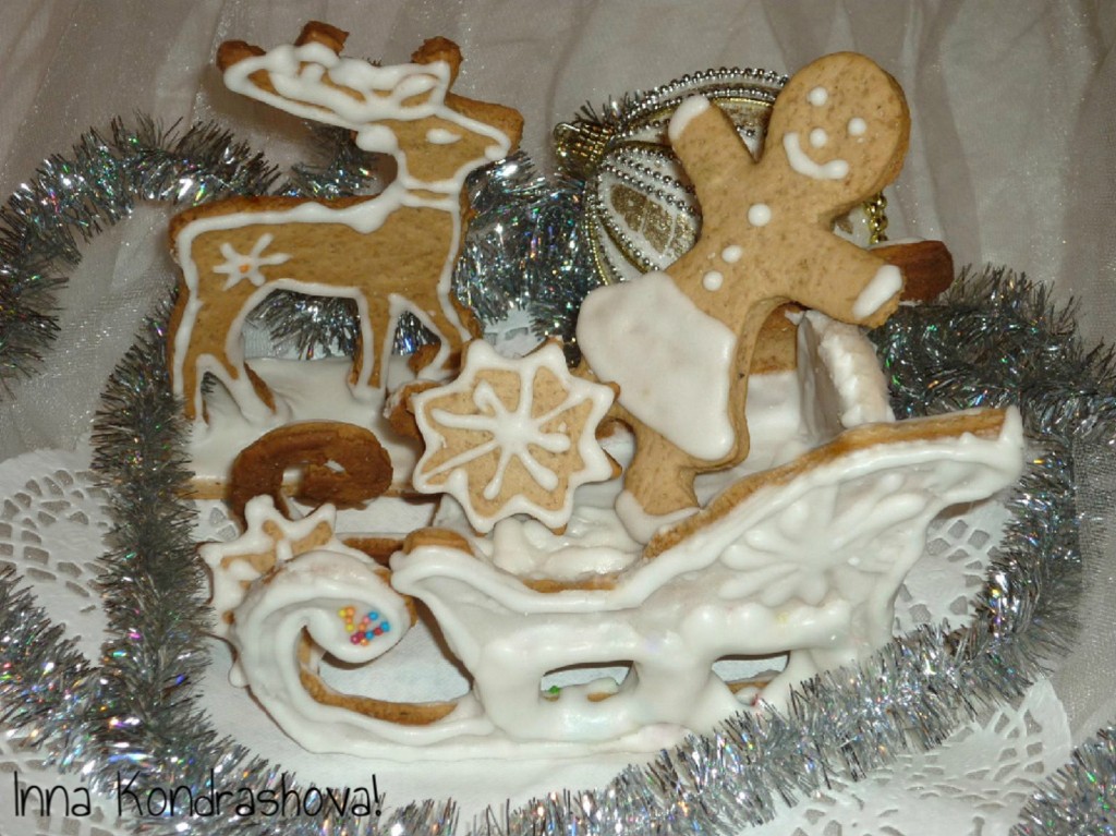 Красивые и вкусные пряничные сани Деда Мороза готовы.