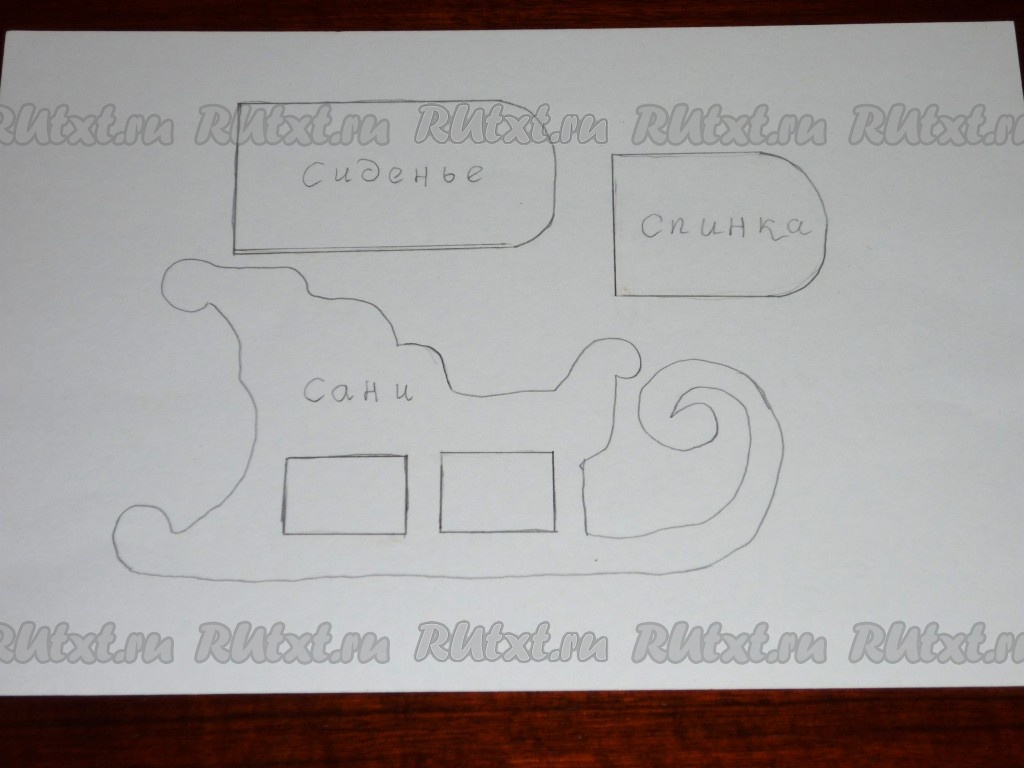 Нужно приготовить заранее из бумаги трафареты саней и оленя.