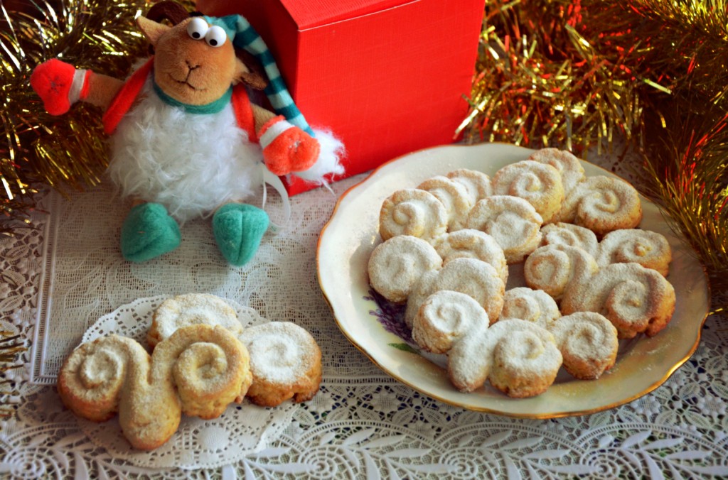 5. Приготовленное печенье "Барашки" посыпаем сахарной пудрой и наслаждаемся чудесным лакомством.