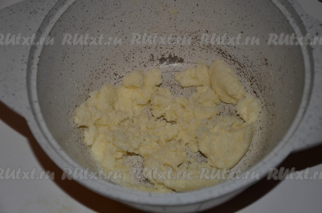 1. Мягкое сливочное масло комнатной температуры и сахар взбить миксером до кремообразного состояния.