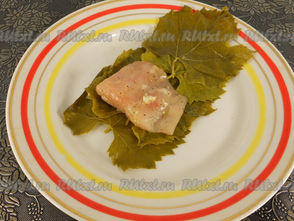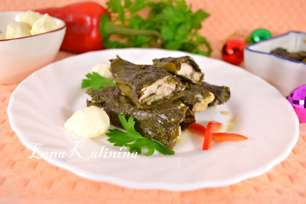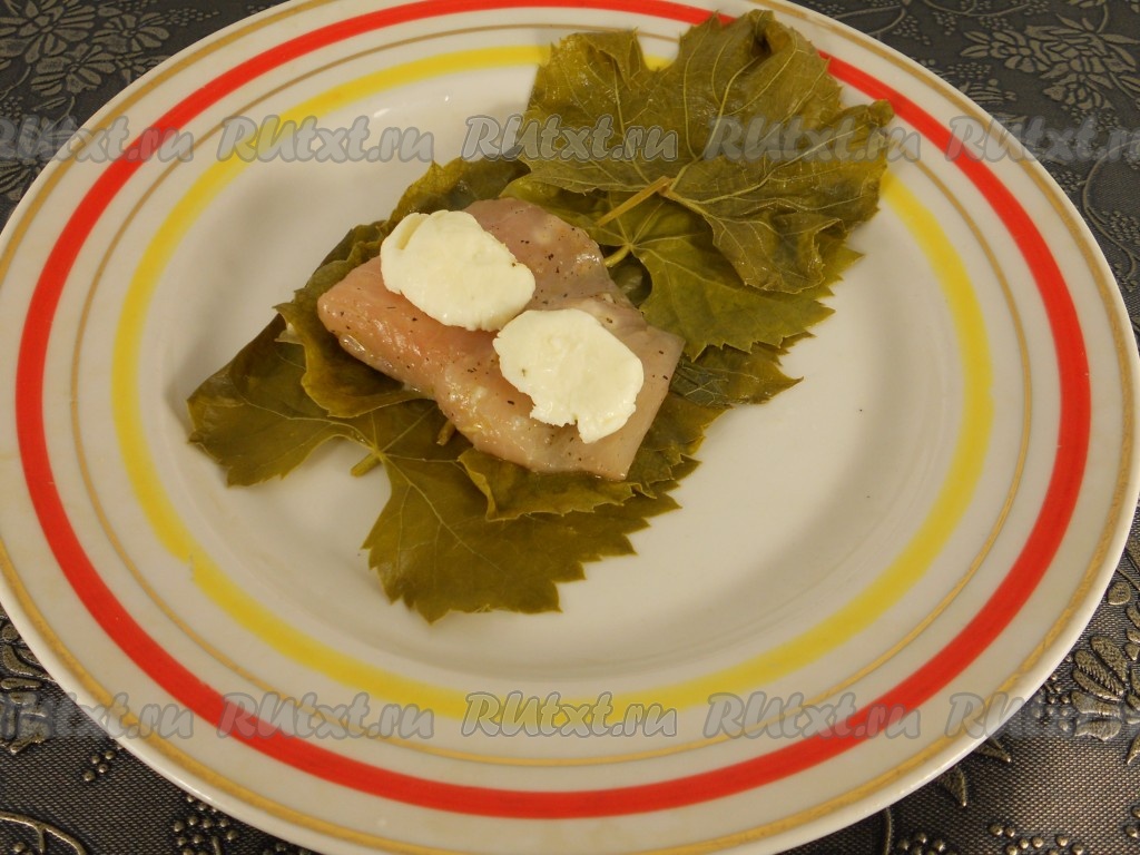 Рыба с моцареллой в виноградных листьях