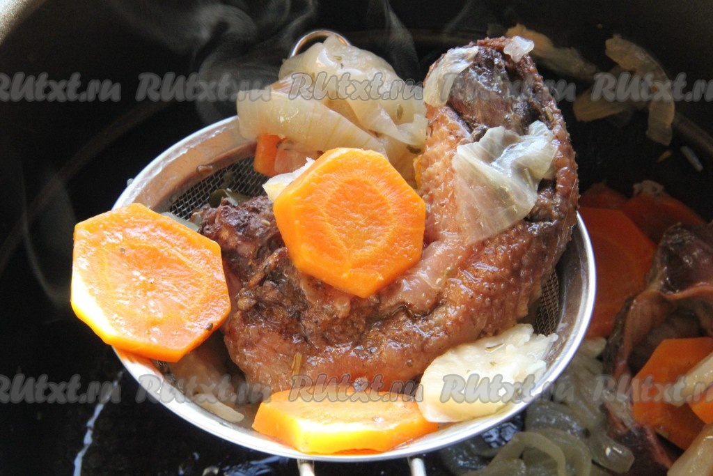 Я думаю куриный бульон могут готовить все и каждый делает это по своему рецепту. У меня немного необычный рецепт приготовления куриного бульона с овощами. Вкус бульона получается насыщенным, ароматным и незабываемым. Увидела я такой способ приготовления у Гордона Рамзи, внеся свои небольшие изменения, я получила идеальный для себя вариант. Готовлю я куриный бульон в скороварке, тогда он томится под давлением, что делает его вкус еще лучше. Вы можете приготовить его на плите.