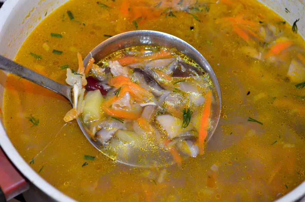Давно я не готовила что-то новенькое из первых блюд, поэтому решила порадовать семью вкусным супом с консервированной фасолью и грибами. Детей я конечно же грибами не кормлю, при подаче просто убрала их из тарелок, а с мужем мы отлично пообедали этим прекрасным супчиком. У меня был заранее сваренный куриный бульон, поэтому я готовила на нем и еще покрошила в суп мясо, а можно сделать просто на одном бульоне.