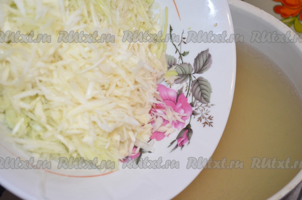 Бульон довести до кипения, положить капусту. После закипания варить 10-15 минут на небольшом огне.