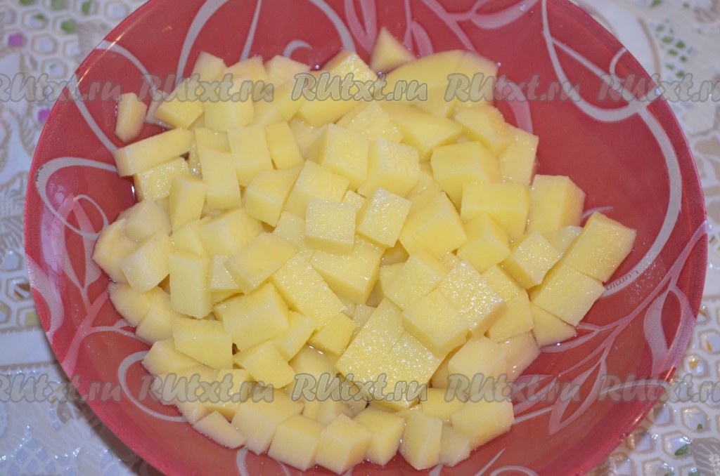 Грибы можете использовать любые: свежие, замороженные, маринованные, лесные или шампиньоны. Свежие или замороженные нужно предварительно отварить в течение 30 минут. Я использовала лесные маринованные, которые промыла водой. Грибы порезать небольшими кусочками.