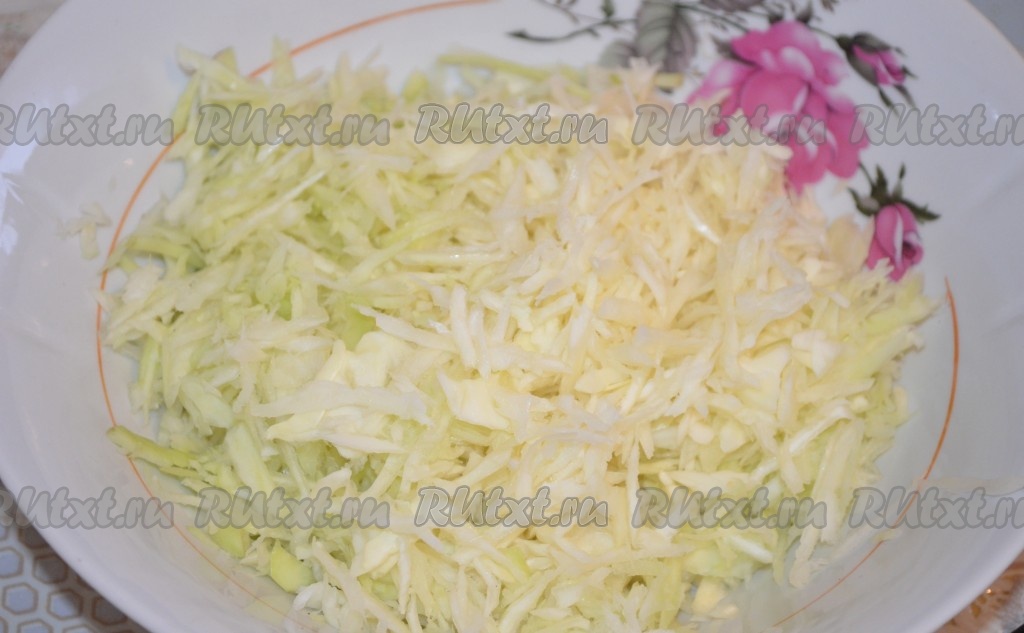Мелко нашинковать капусту. Я делаю это на крупной терке.