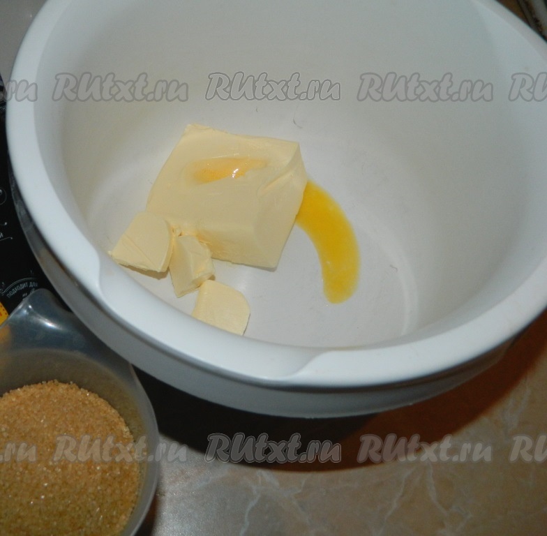 Замачиваем сухофрукты в кипятке. Затем мягкое сливочное масло взбиваем с сахаром.