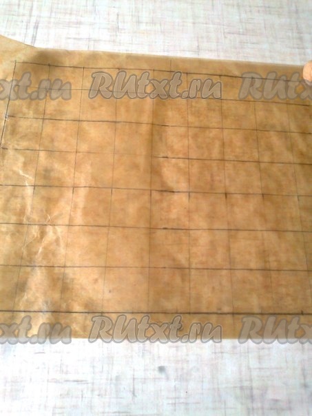 Теперь приглашаем помощников рисовать. На двух листах пергамента рисуем карандашом контур 27х21 см. Его надо заполнить клетками 3х3 см, одни клетки - прямо,