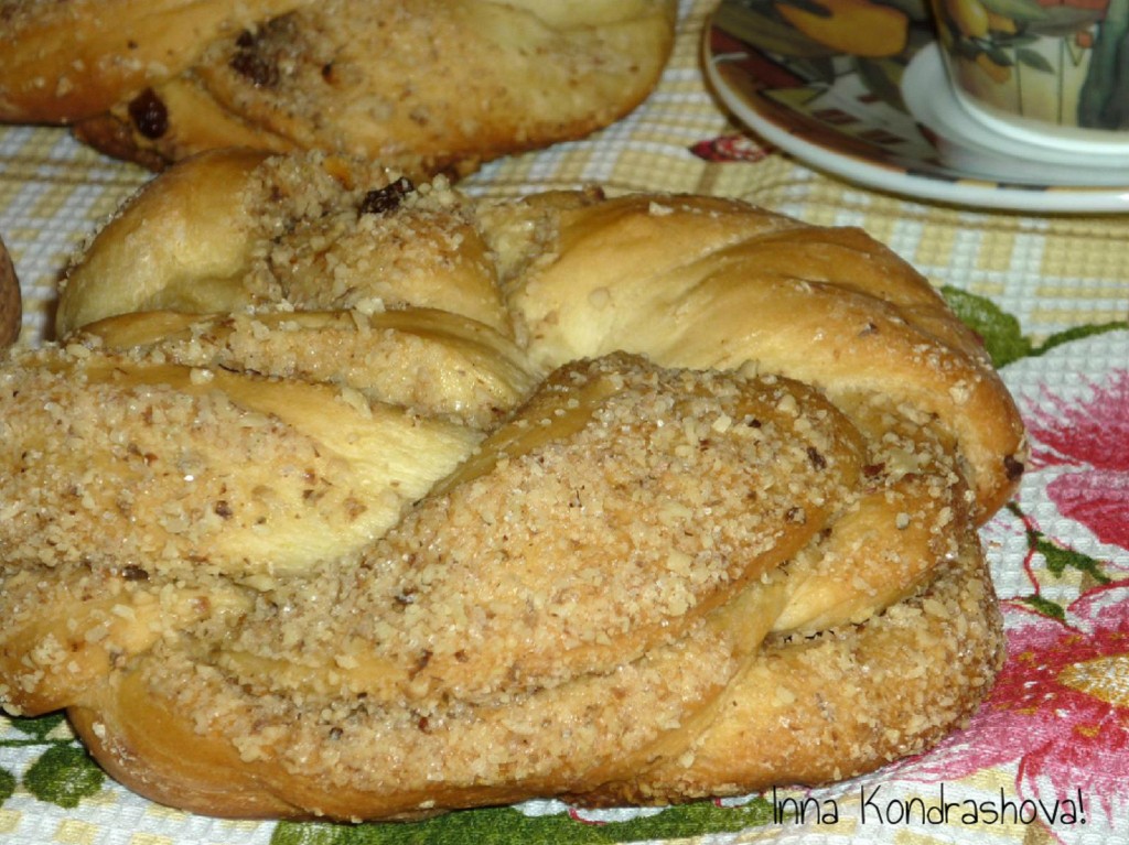 Хочу предложить рецепт приготовления сладких, ароматных, очень вкусных булочек с орехами и изюмом из дрожжевого теста. Моим близким так полюбилась эта выпечка, что готовлю её даже к праздничному столу. Из указанного количества ингредиентов я сформировала две больших аппетитных булочки. Советую и вам попробовать эту выпечку!