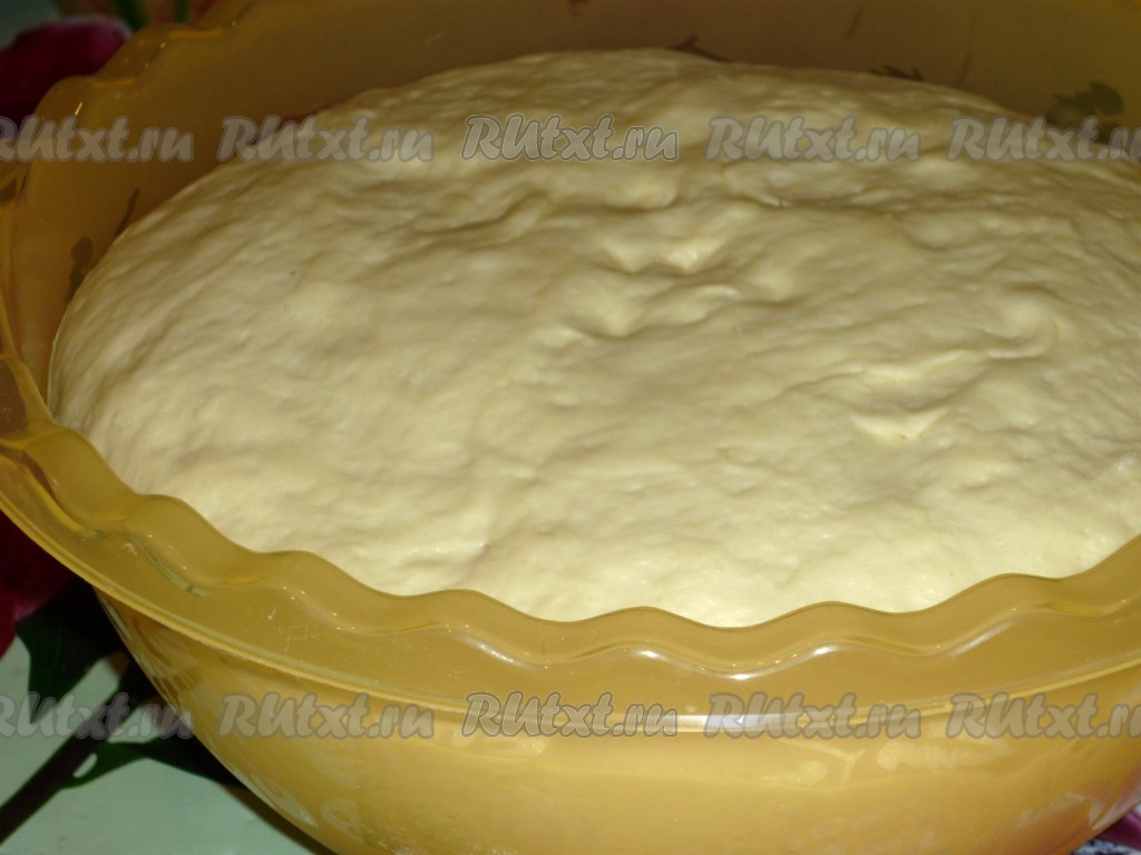 Тёплое молоко (температура молока должна быть не выше 40 градусов) влить в достаточно глубокую миску, всыпать дрожжи, перемешать, добавить 1 столовую ложку сахара и 2 столовых ложек просеянной муки, перемешать и оставить опару на 10 минут. По истечении 10 минут поверхность опары запенится - это говорит о том, что дрожжи начали работать. В миску с запенившейся опарой всыпать оставшийся сахар, яйцо, растопленное, но не горячее, сливочное масло, щепотку соли, начать частями добавлять муку, постепенно замешивая мягкое, приятное в работе тесто. Добавляя муку, учитывайте консистенцию замешиваемого теста, как только тесто перестанет липнуть к рукам, значит больше муку добавлять не нужно. Поместить тесто в миску, накрыть полотенцем и оставить на 1 час в тёплом месте. За это время тесто значительно (раза в 2-3) увеличится в объёме.