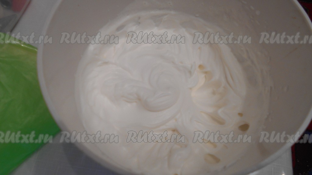 Взбиваем сливки и сгущенку до устойчивых пиков. При желании во взбитые сливки можно добавить пищевые красители.