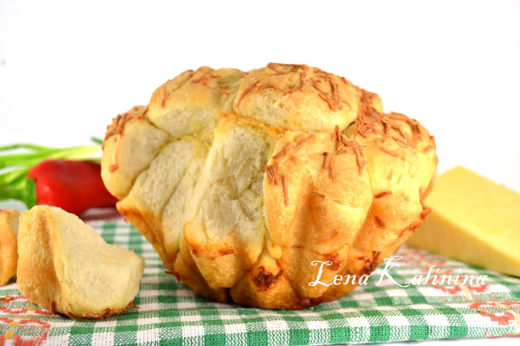 Обезьяний хлеб - пышная, очень вкусная выпечка. Название хлеба, как и его происхождение, до сих пор остаётся загадкой. Но ведь главное не название, а великолепный вкус и внешний вид. Рецептов этого хлебушка множество, бывает он и сладкий, и несладкий, с различными добавками. Но формовка этой выпечки всегда одинакова: он состоит из кусочков, поэтому едят его, просто отрывая часть хлеба руками. В этот раз я предлагаю вам испечь несладкий, аппетитный, воздушный, ароматный обезьяний хлеб с сыром. Он станет отличным дополнением и к первым, и ко вторым блюдам!