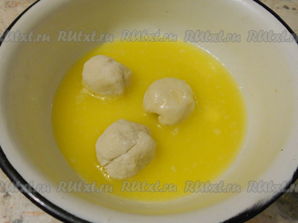 Масло сливочное растопить и остудить. Каждый шарик обмакнуть в масло со всех сторон.