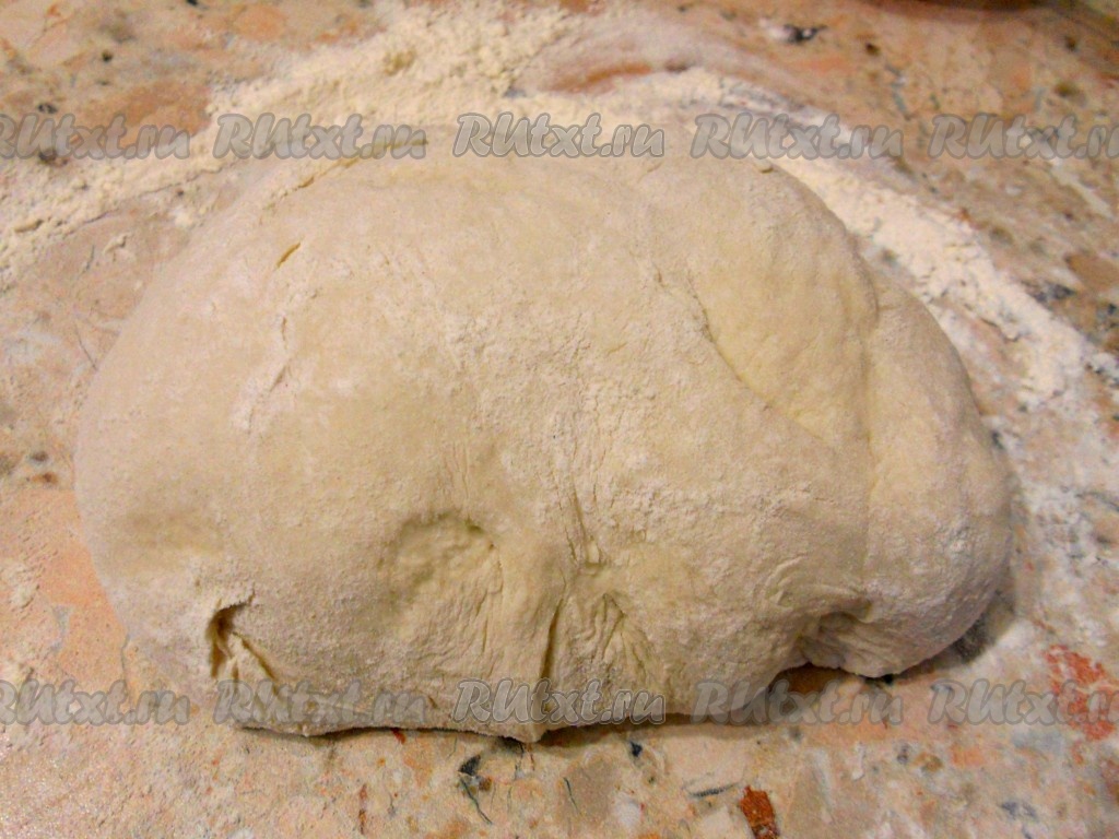 В глубокую миску просеять муку, сделать в ней углубление, добавить соль, сахар и дрожжи, влить тёплую воду (температура воды должна быть градусов 38-40) и замесить мягкое, нежное тесто, не липнущее к рукам и столу. Накрыть миску с тестом полотенцем и оставить в тёплом месте для подхода примерно на 1 час. Тесто хорошо поднимется и увеличится раза в 2-3. Подошедшее тесто хорошо обмять, подсыпая немного муки.