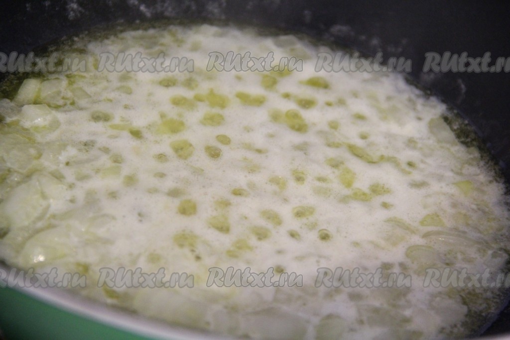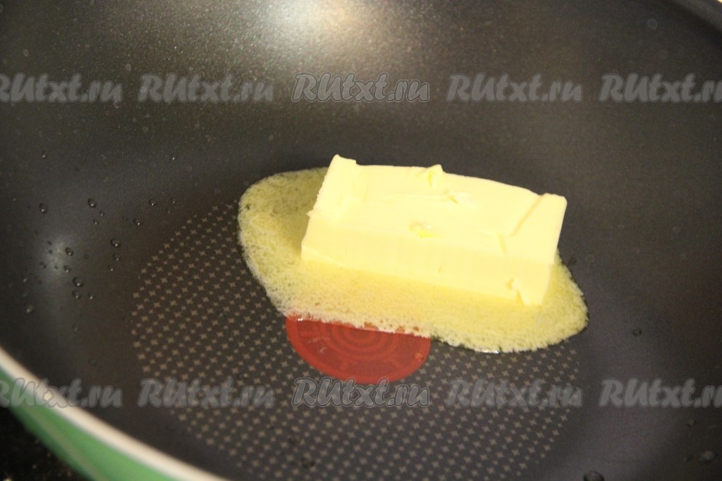 В глубокой сковороде растопить сливочное масло. Лук почистить и нарезать мелкими кубиками.