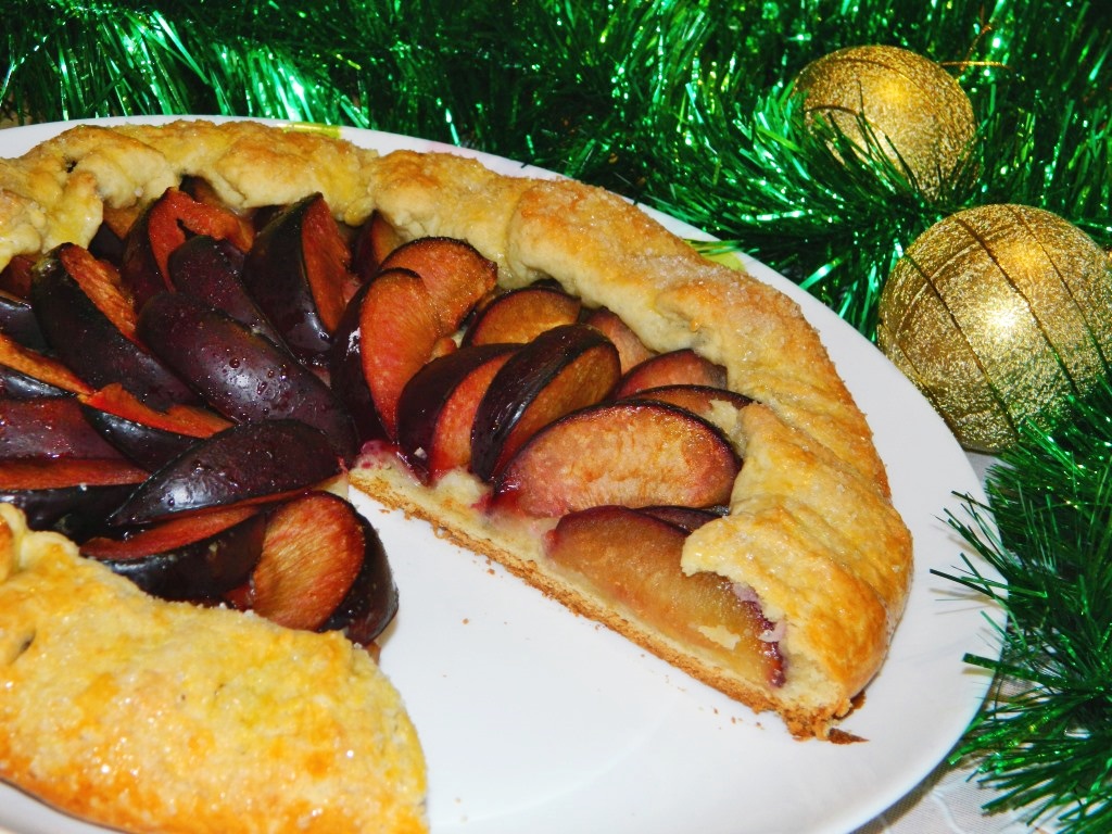 Готовую выпечку достаём из духовки, перекладываем на блюдо для подачи. Можно кушать, но я предпочитаю такую выпечку есть в остывшем виде. Аналогично формируем и готовим вторую галету со сливами на творожном тесте. Выпечка, благодаря сочной начинке и нежному тесту, получается необыкновенно вкусной!