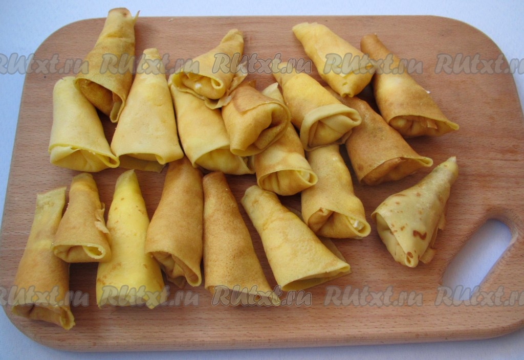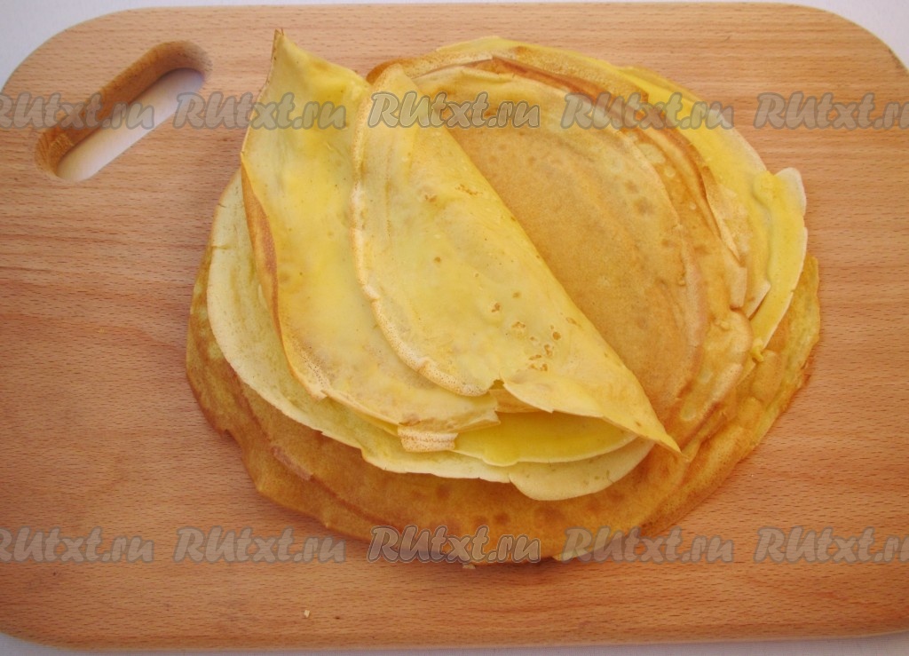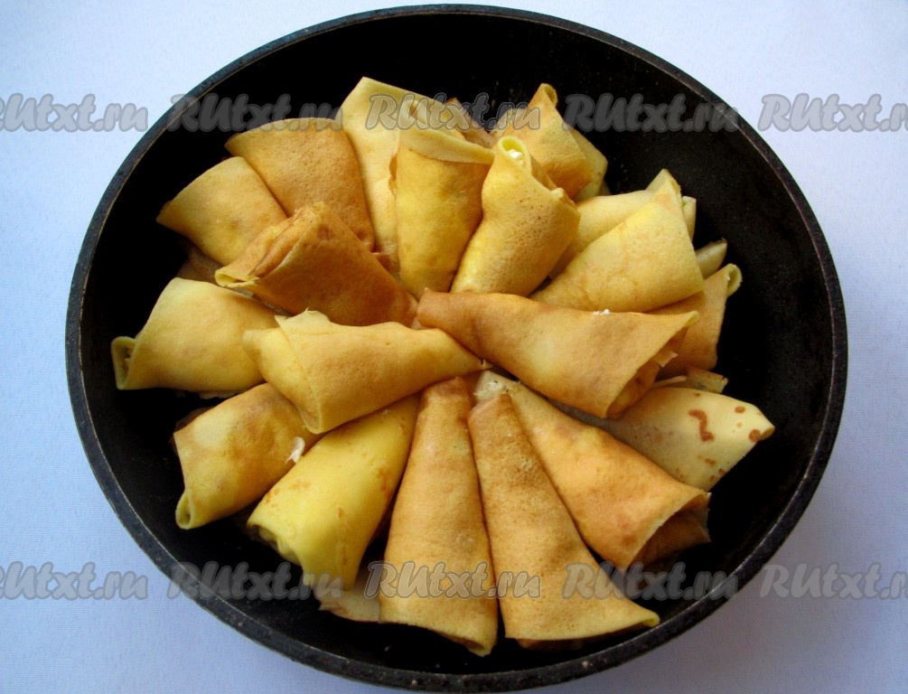Сверните конвертики. В принципе, вы можете завернуть блины своим любимым способом.