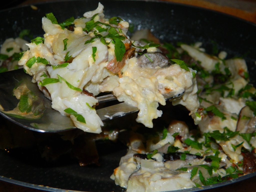 Рыба, грибы, сливки и сыр очень хорошо сочетаются. Поэтому предлагаю приготовить филе рыбы с грибами. Это вкусное и сытное блюдо прекрасно подойдёт для семейного обеда или ужина.