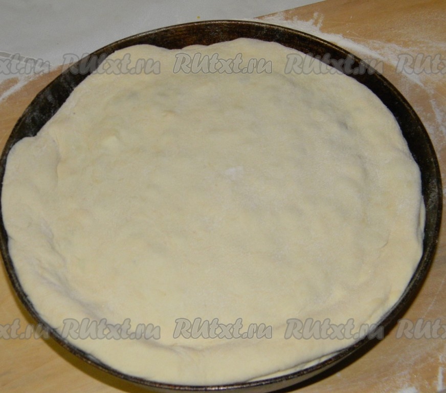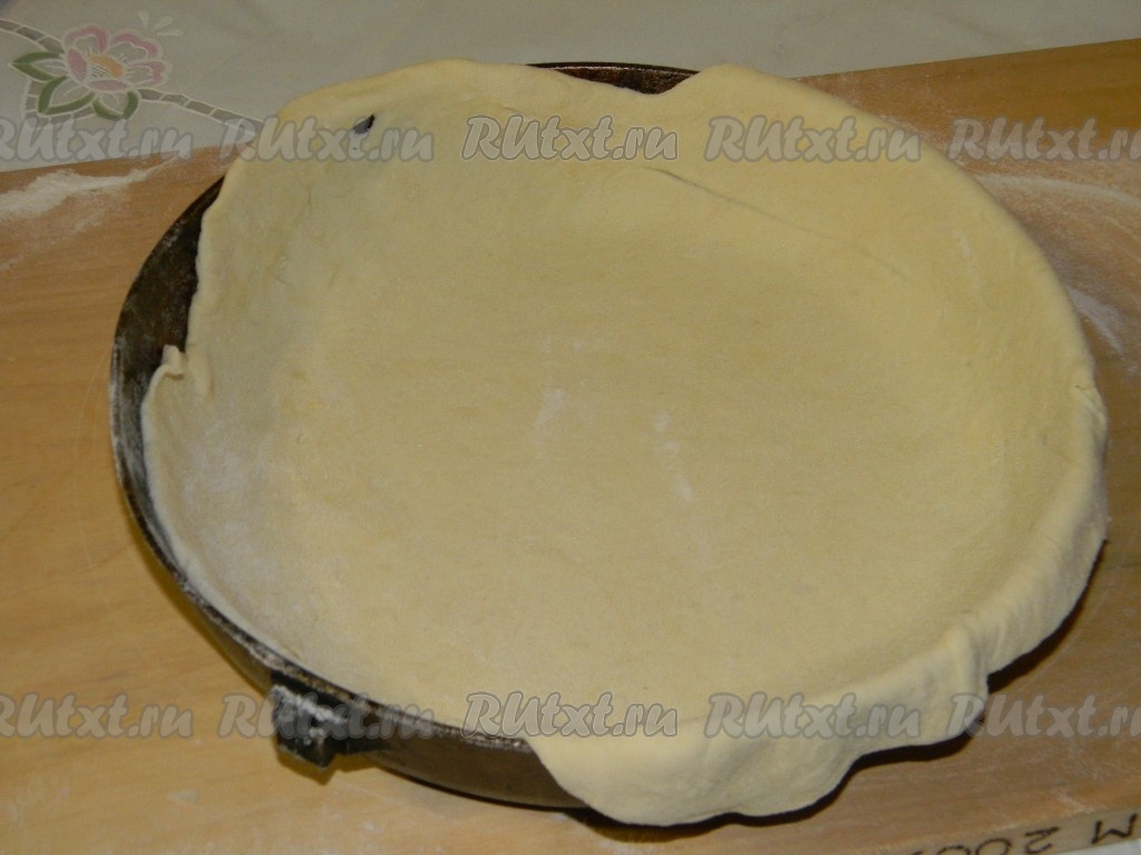 Раскатать большую часть теста до размера немножко большего формы для выпекания, выложить его в форму для выпечки, предварительно смазанную маслом.