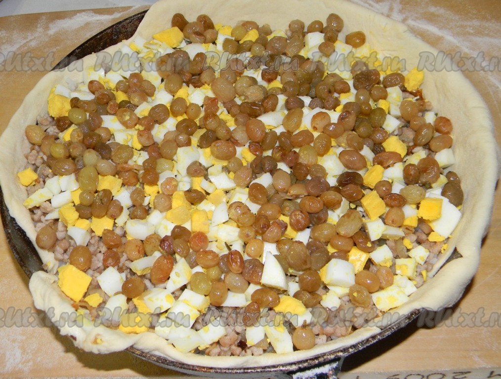 Изюм? Изюм... Изюм! КАК-ТО ИНТЕРЕСНО  самой стало - как отреагируют мои вкусовые рецепторы на такое сочетание продуктов. А точнее изюмчика с мясом, яйцами? Но  изюм так настойчиво просится ко мне в друзья... Надо пробовать. Определённо! Может я что-то важное упускаю? Ларисочка, Вы меня сподвигли на кулинарный подвиг. Обязательно попробую этот незаурядный пирог! Он - заманиха!