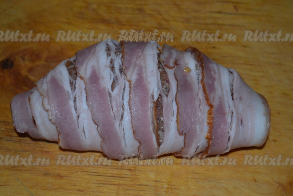 Оборачиваем нашу котлетку беконом, формируя из нее мясной круассан.