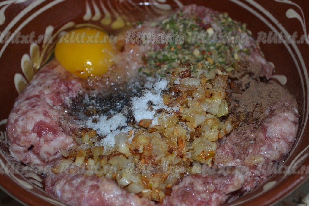 Туда же добавляем яйцо, соль, перец и другие специи.
