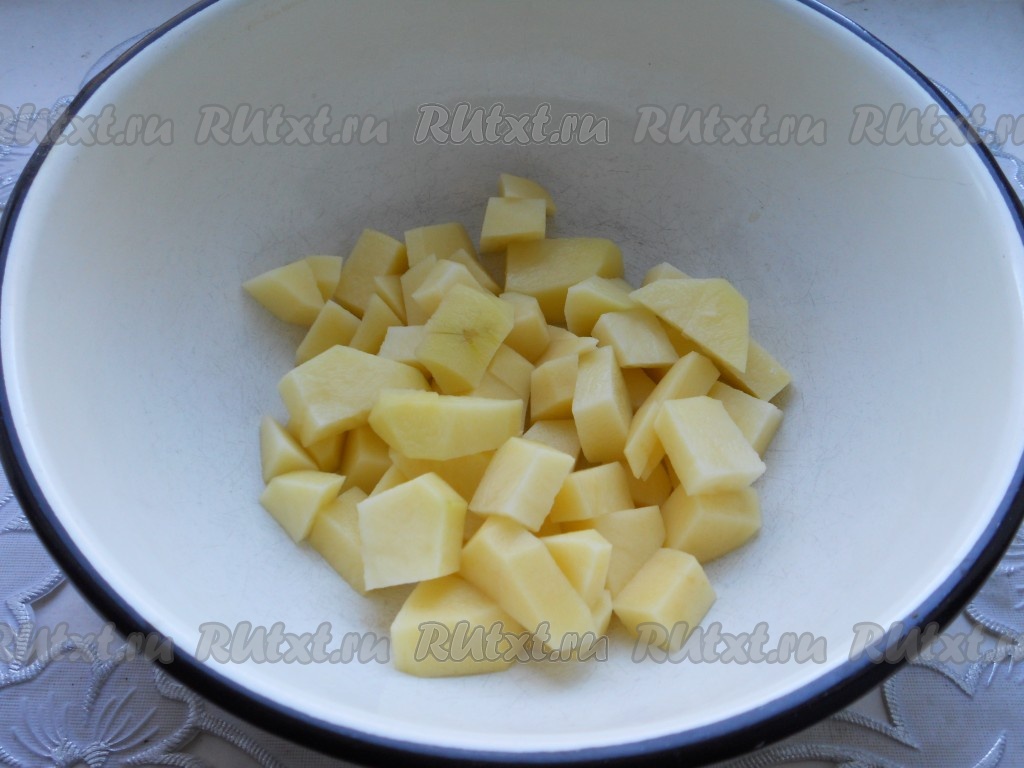 Картофель очистить и порезать небольшими кубиками.